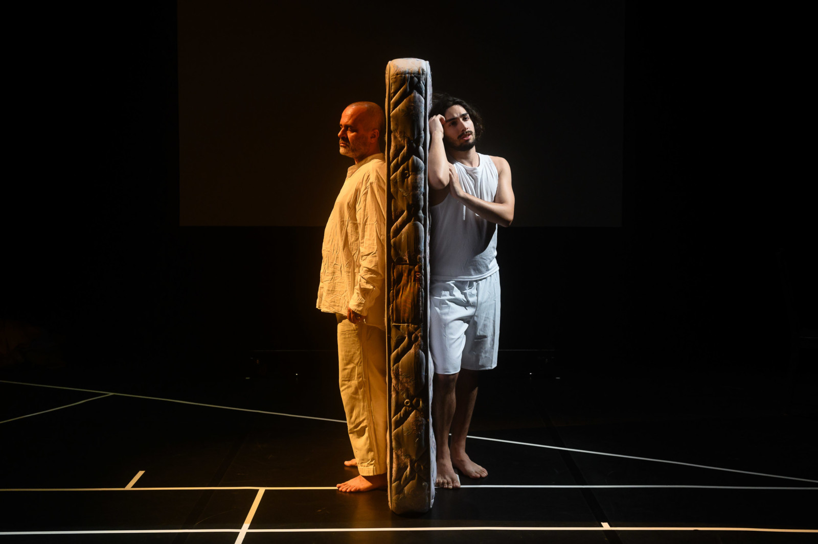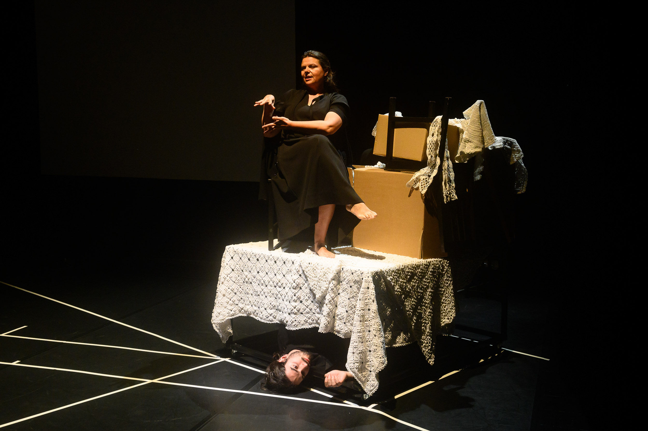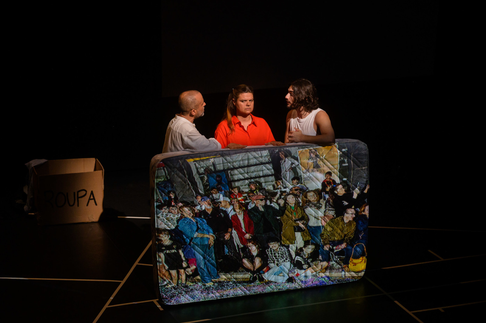 A palavra volta a ceder lugar ao corpo.A cama surge como infra-estrutura mínima, rotativa, partilhada. Um dos momentos fortes da peça é o da cama quente. Dormir deixa de ser acto íntimo para se tornar operação logística.