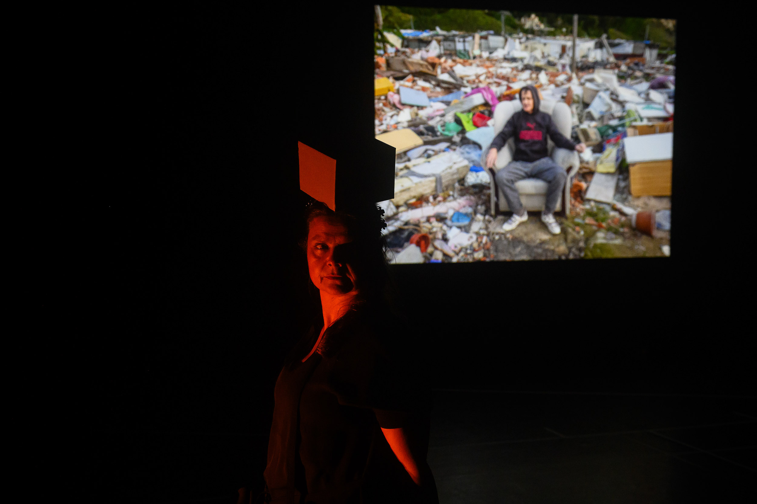 É neste espaço saturado que surge o canto. “Eu quero uma casa.” A frase repete-se, alterna entre vozes, acumula-se. O pedido cresce por enumeração: casa, cama, vida. Pintar, sustentar, reger, regar, esconder, comer, dormir, sorrir. O canto constrói uma gramática elementar do habitar, feita de gestos mínimos.